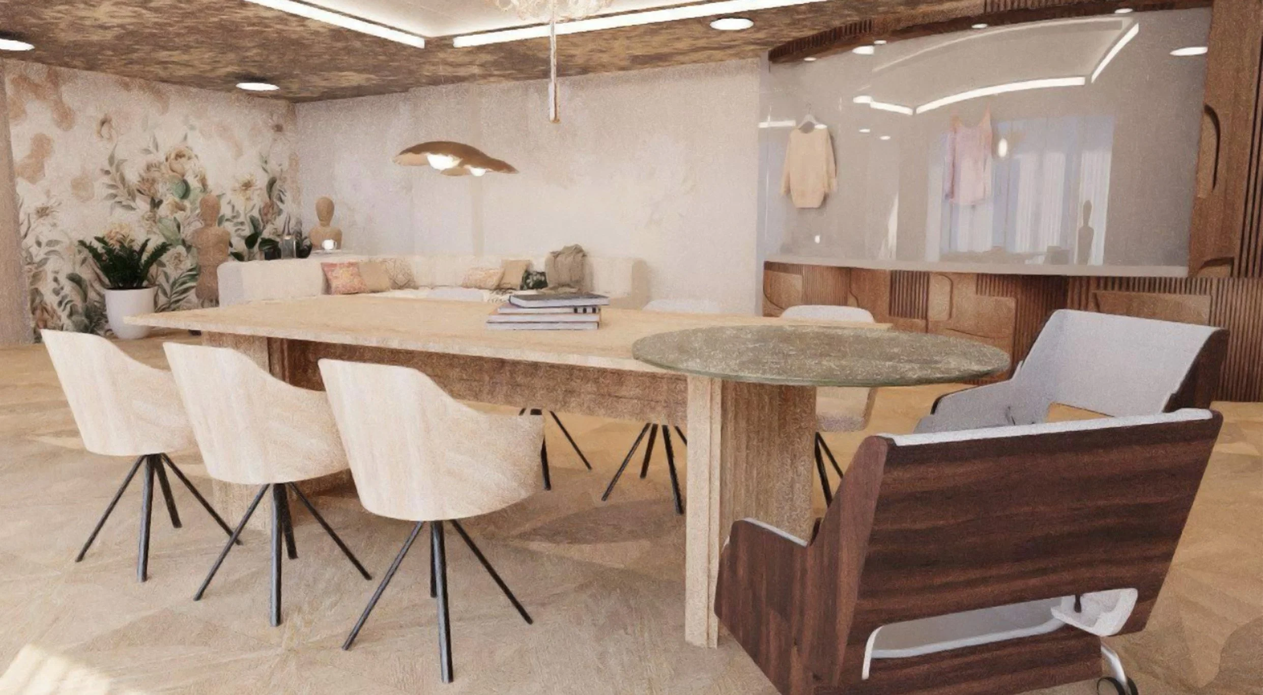 For this group project, we were tasked with designing a luxurious office and apartment penthouse for the esteemed fashion creators, Zimmermann, in the heart of Milan, catering to their needs during Fashion Week. Our focus was on creating an environment brimming with ample meeting spaces and an elegant showcase area for their collections. With two bedrooms tailored for the designer duo, we carefully curated a palette bursting with floral motifs, lush greens, and soft pinks, with a touch of boho chic while maintaining a neutral entrance to ensure the spotlight remains on their creations.